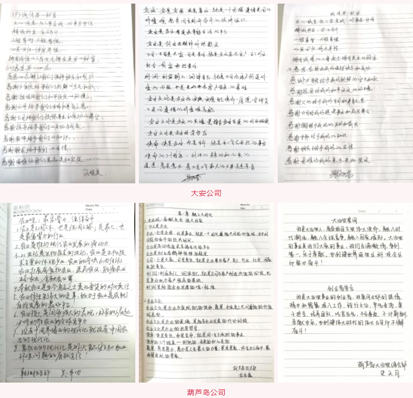 运动历程中,创业者们始终如一,将一直以来关于企业文化的深切热爱一笔一划誊写出来,笃志凝思、触笔走心,并在此历程中一遍遍重温文化英华,学习文化金句,营造起了“比学赶帮超”的角逐气氛!